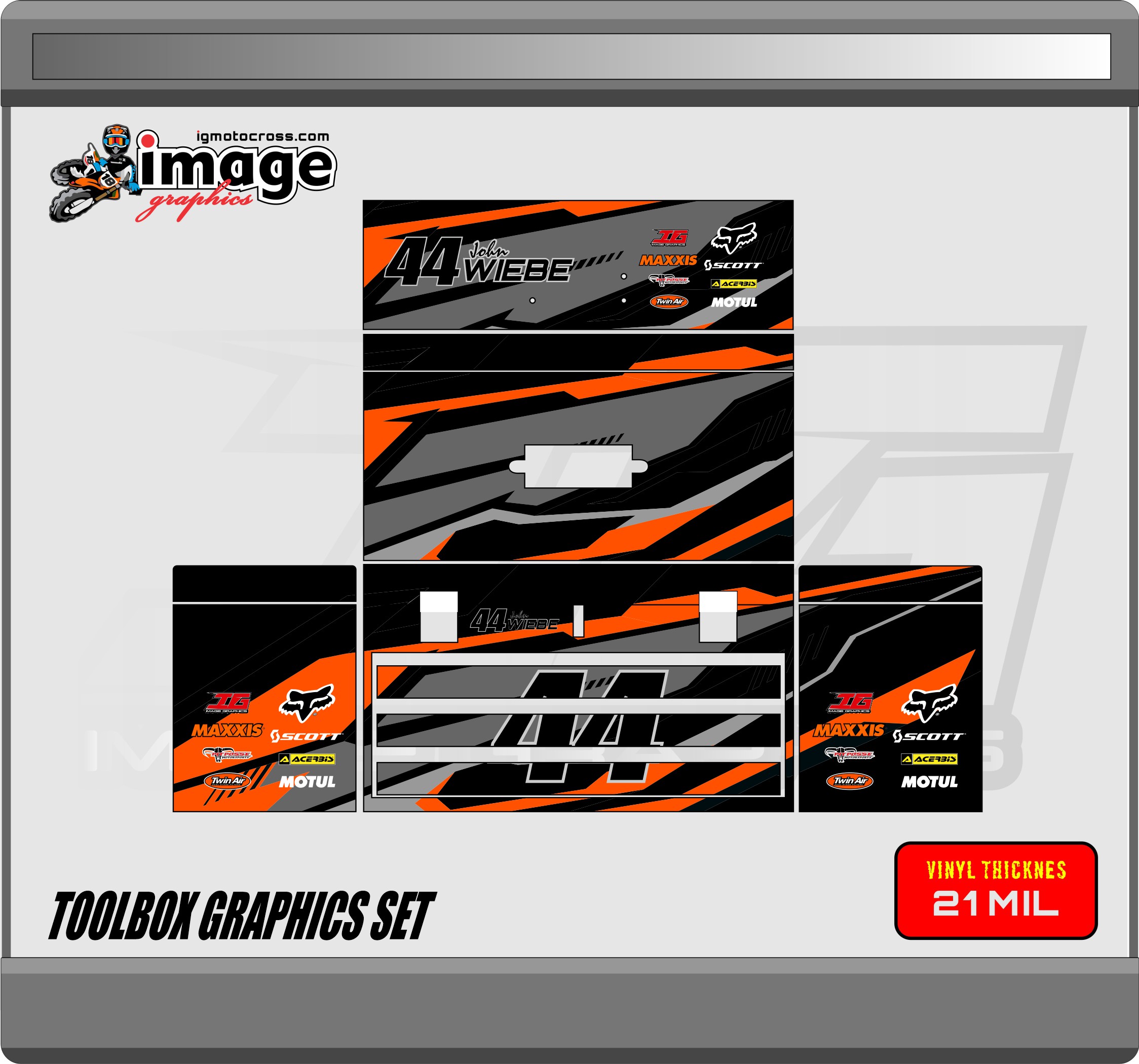 HIGH QUALITY SEMI CUSTOM GRAPHICS FOR Husky 3 drawer metal box, (TOOL BOX NOT INCLUDED. YOU CAN CHANGE NUMBERS,NAME AND .7 logos PRINTED IN MX SPECIFIC VINYL 21 MIL LAMINATED WITH THICK HIGH GLOSS CLEAR.